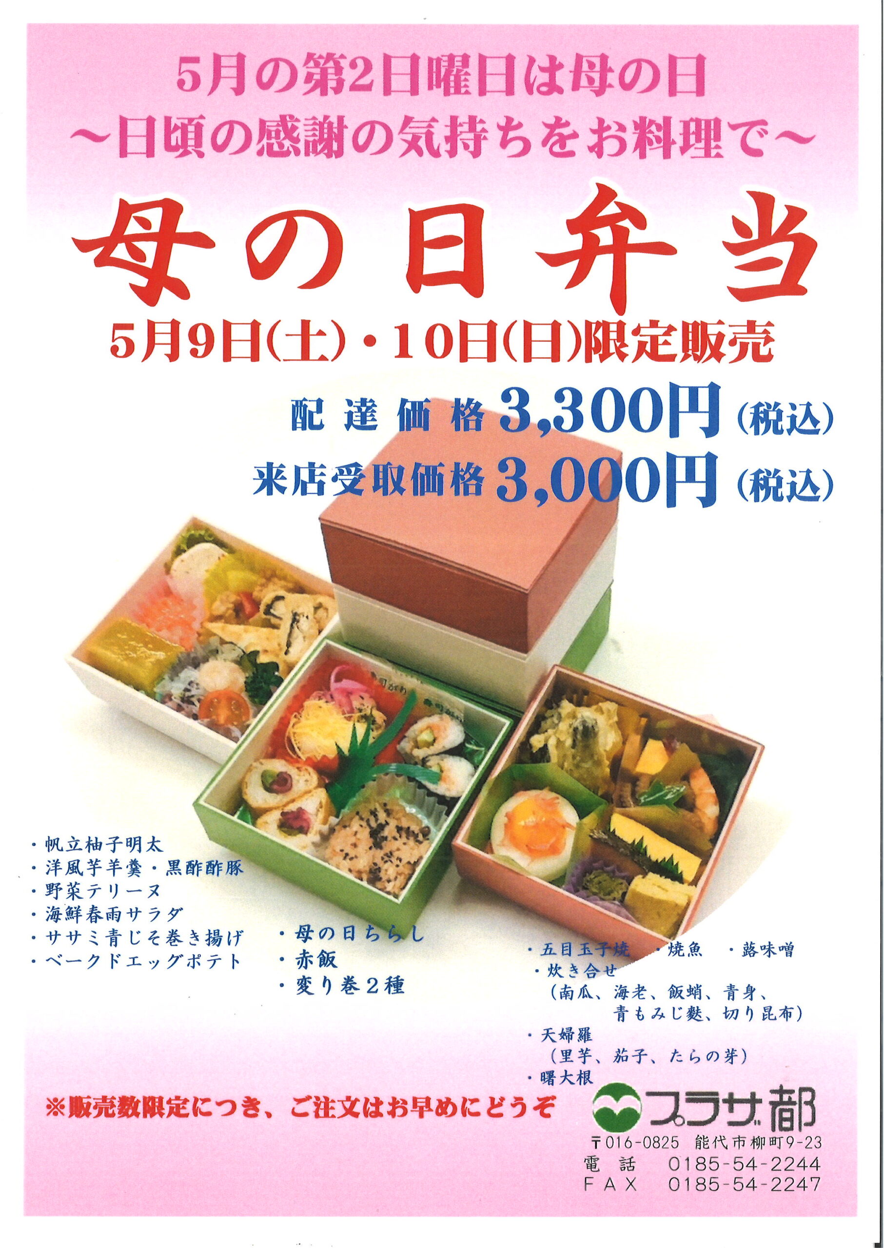 プラザ都では、5月9日㈯と10日㈰の2日間で母の日の販売をさせていただきます。